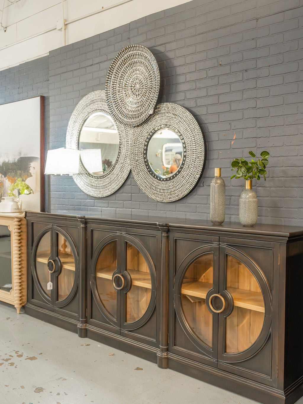 Elevate your space with this stunning 6-door console, designed to be both functional and artistic.