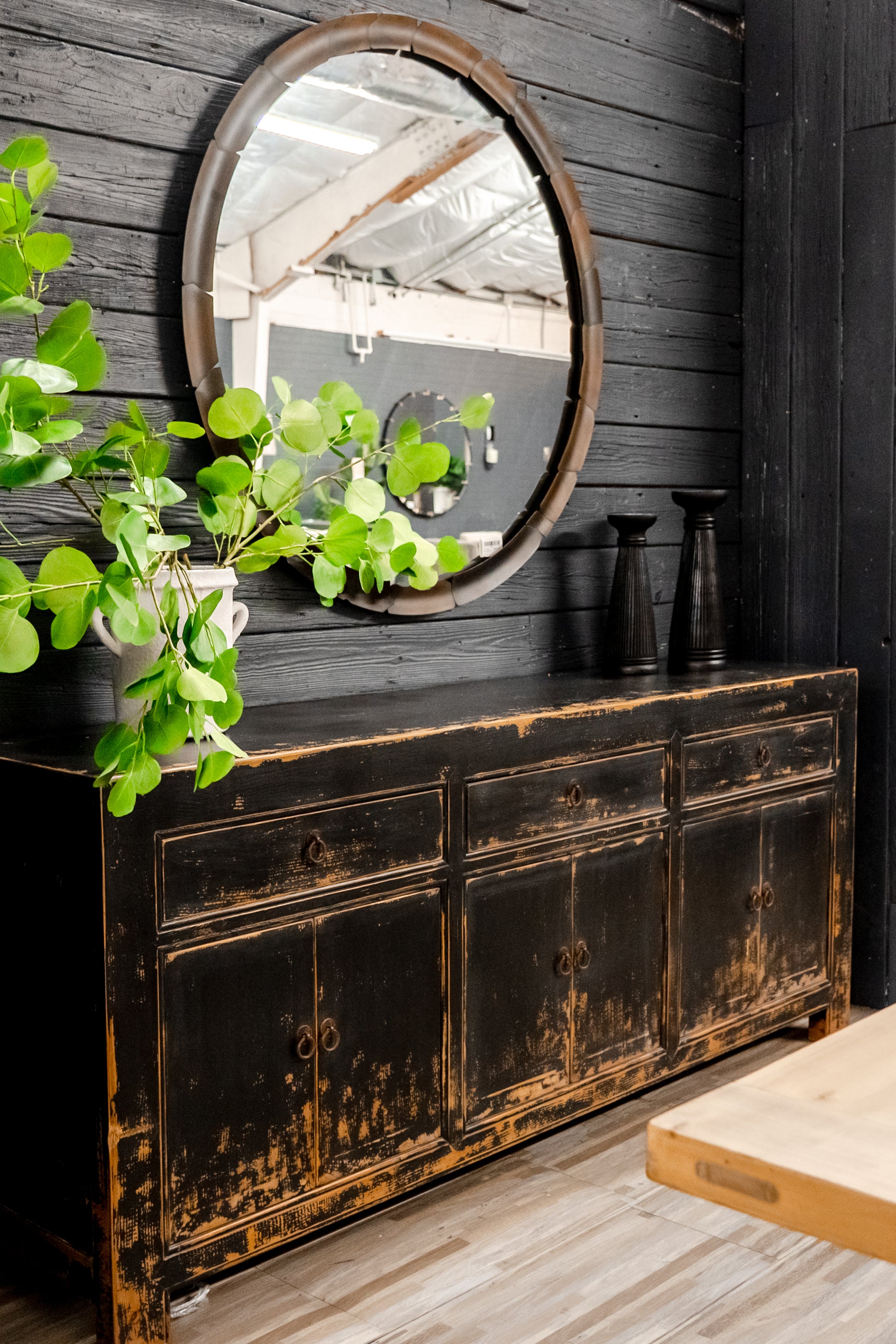 Huge Mirror. Metal but has the look for wood slices.