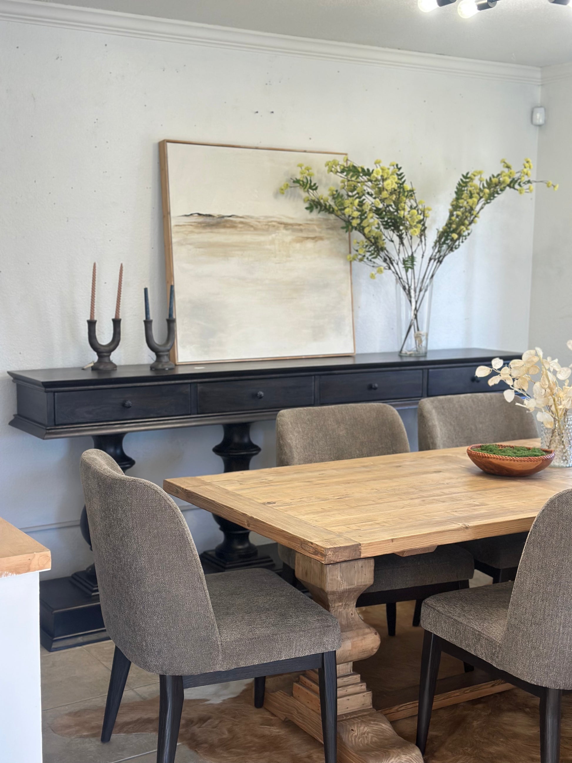 Stunning 4 pedestal Console. Espresso Color with hint of brown. You can also see the wood grain! Solid wood piece!